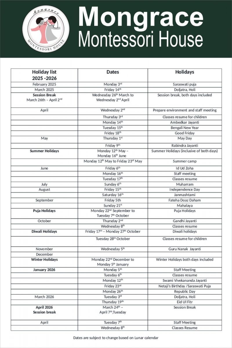 Holiday List 2025-26
